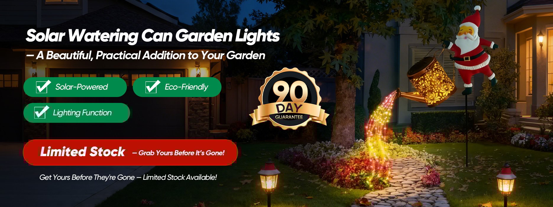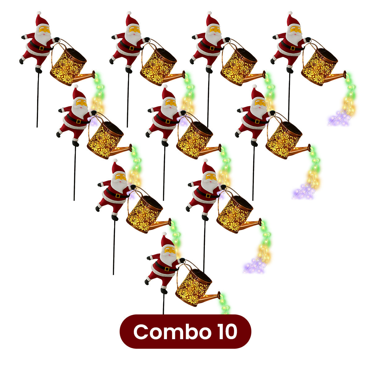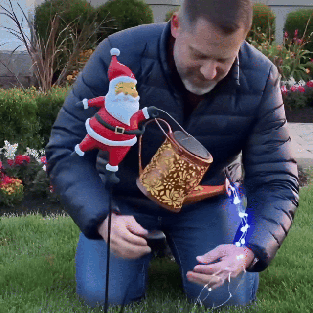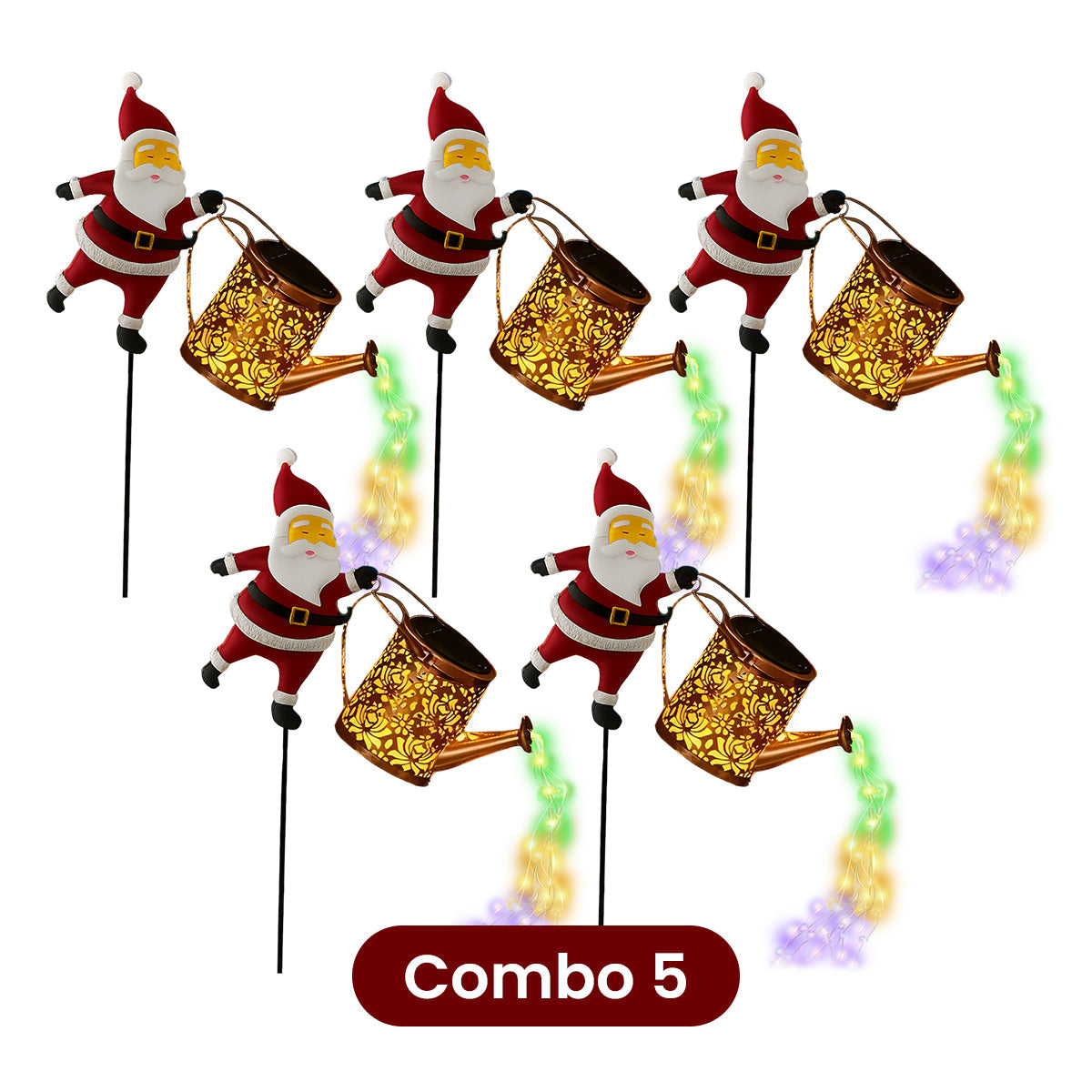 36 flickering LEDs cascade down six light strings, creating a breathtaking "flowing water" effect that brings your garden to life at night.Transform your outdoor space into a heartwarming holiday scene with the Solar Santa Watering Can Light where Santa pours out a stream of sparkling light each night.