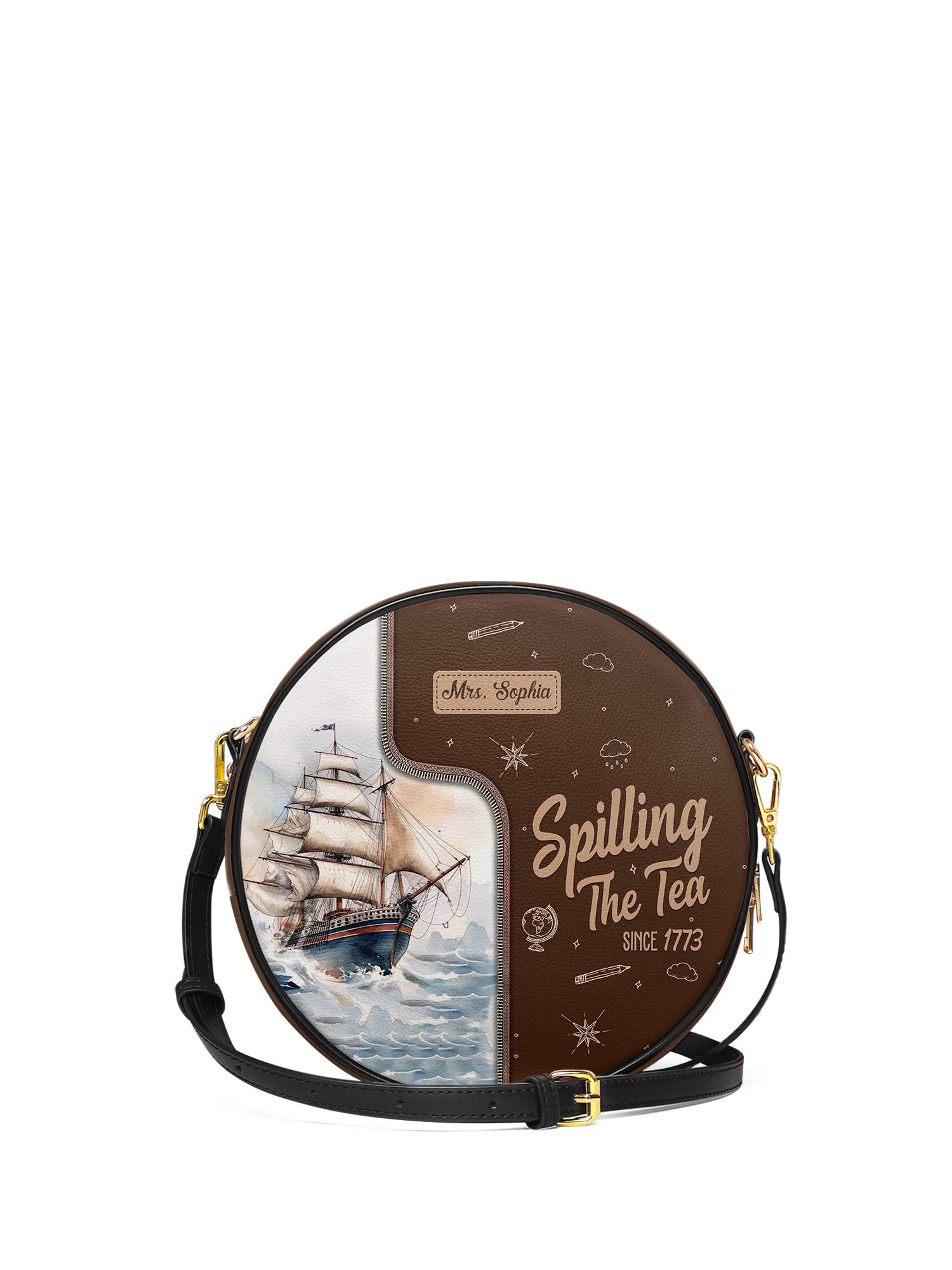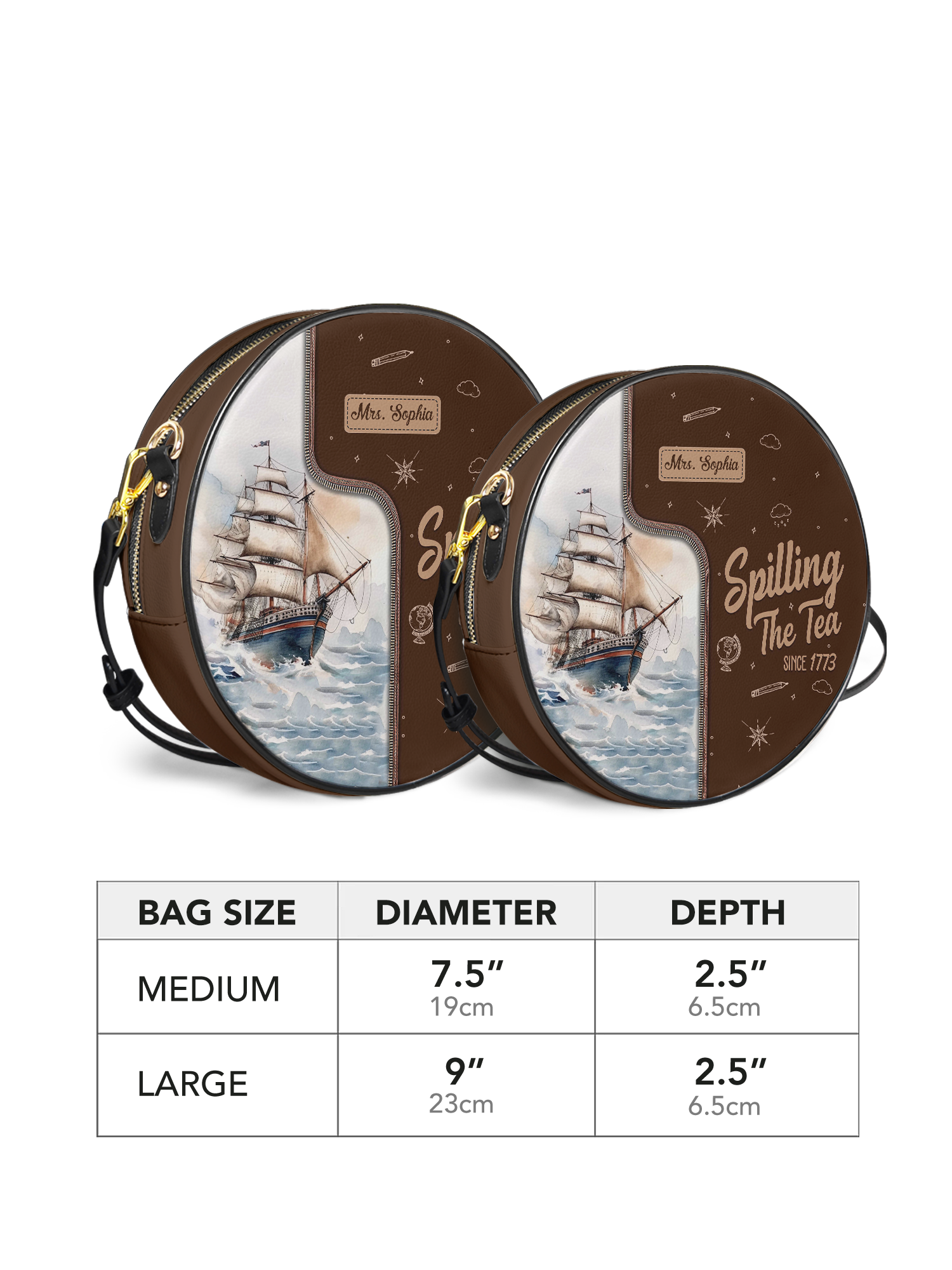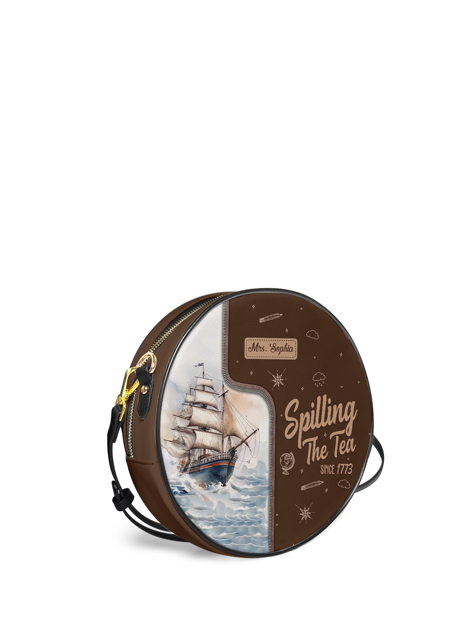 Crafted from high-quality leather, this bag boasts a unique circular silhouette that sets it apart from traditional purses. Its spacious interior ensures you can carry all your essentials with ease, whether you're running errands or heading out for a night on the town.
