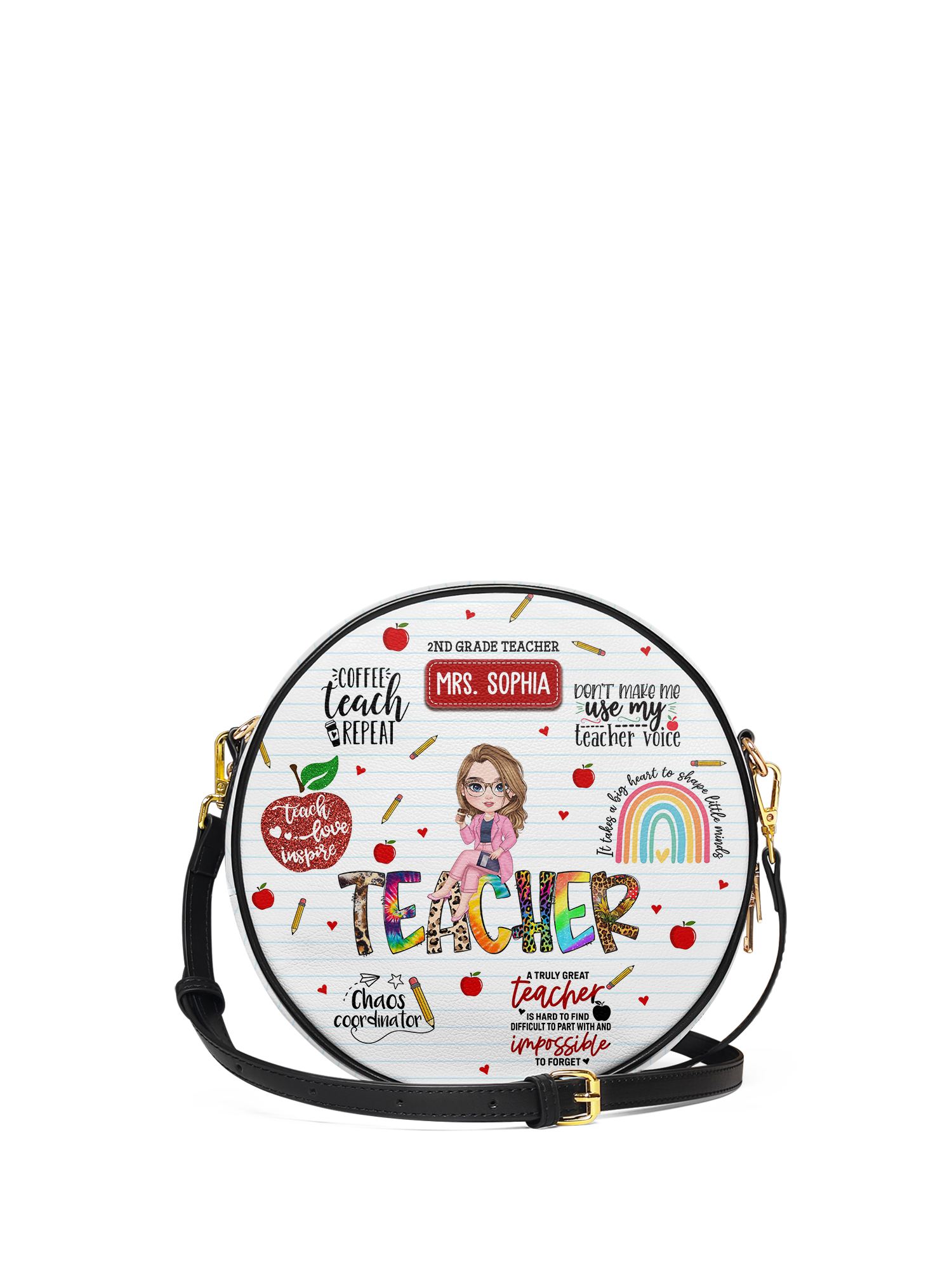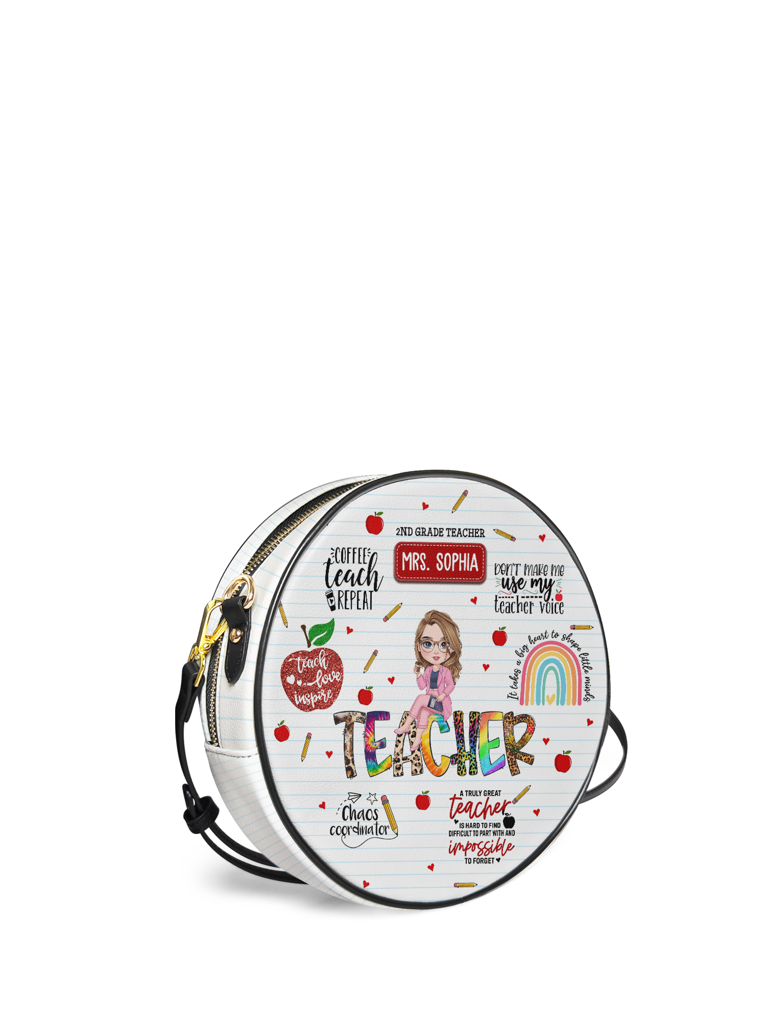 Teacher Teach Love Inspire Circle Crossbody Bag