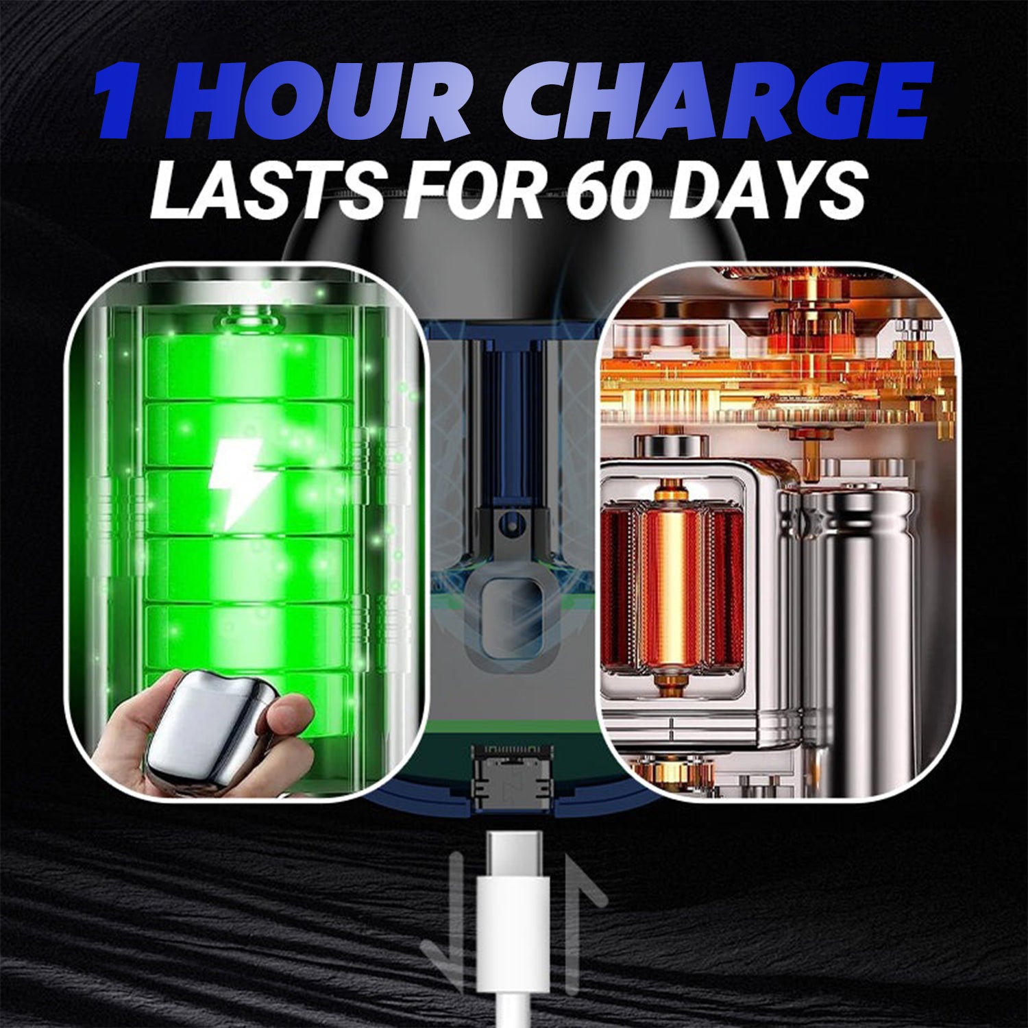 The shaver fully charges in just 60 minutes via USB-C fast charging and delivers up to 60 days of use, with a smart battery indicator so you always know when it’s time to recharge.