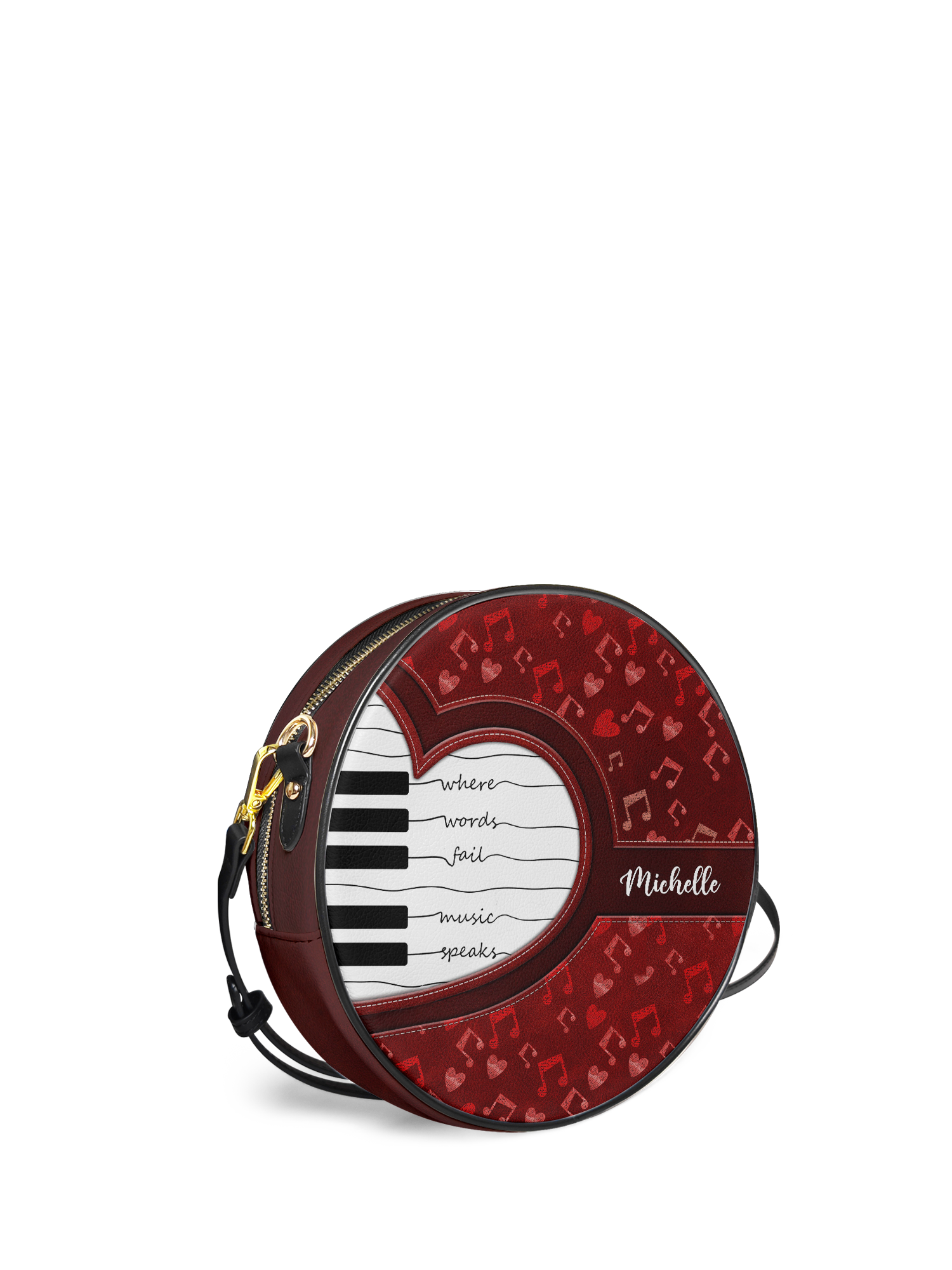 Where Words Fail Music Speaks Music Notes Circle Crossbody Bag